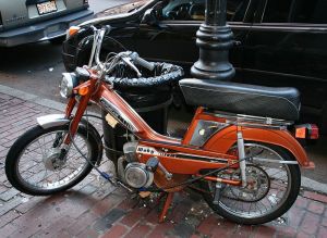 I’ve never cycled in France. But a long time ago, I drove a moped there, and earlier this month, a car. My mobylette was blue, like this one: