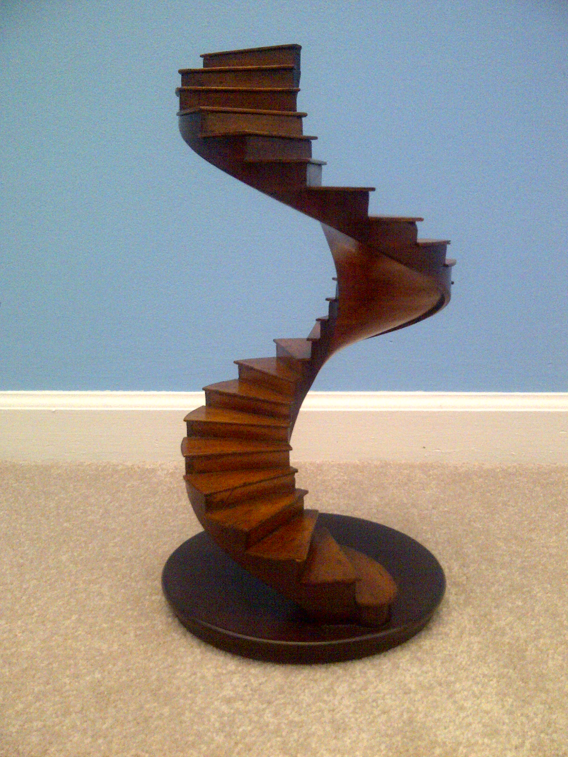 Which brings me to the French term for spiral staircase: escalier en colimaçon, one of my all-time favorite things. In the Parisian home that my husband and I visited this summer, a beautiful wood spiral staircase, slimmer than the miniature one in the above photo, stood in a corner of the living room, le salon. I’ve always wanted a spiral staircase in my house and lobbied to get it when we added on some rooms a few years ago. Alas, the combination of architecture and budget wouldn’t permit it, so I had to settle for a small, decorative one.