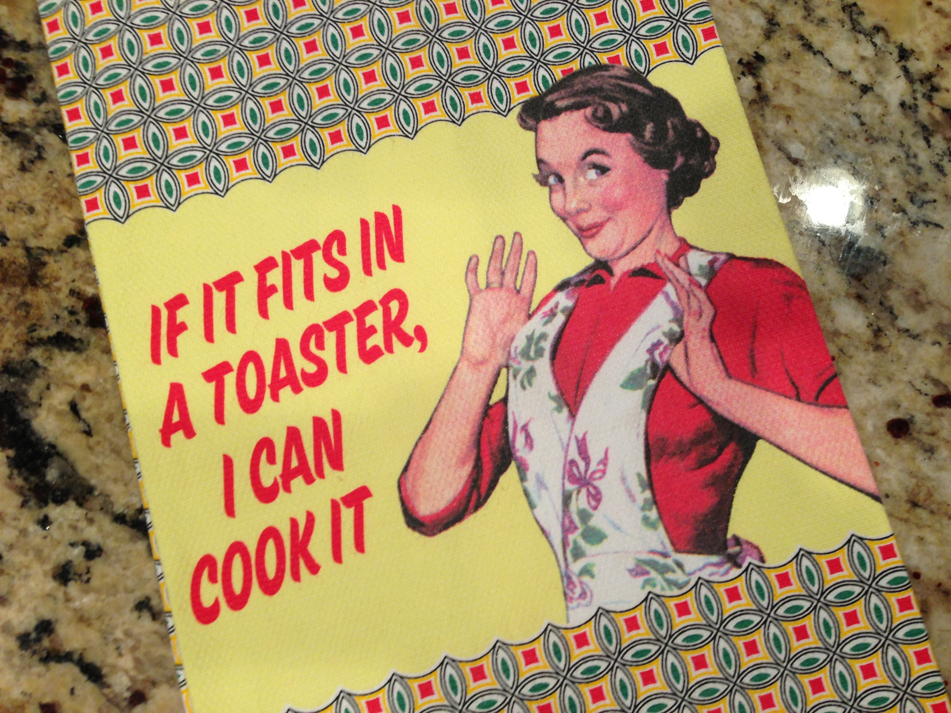 Not long ago, a dear friend (let’s call her “Lisa”) sent me a kitchen/tea towel that fits me perfectly.