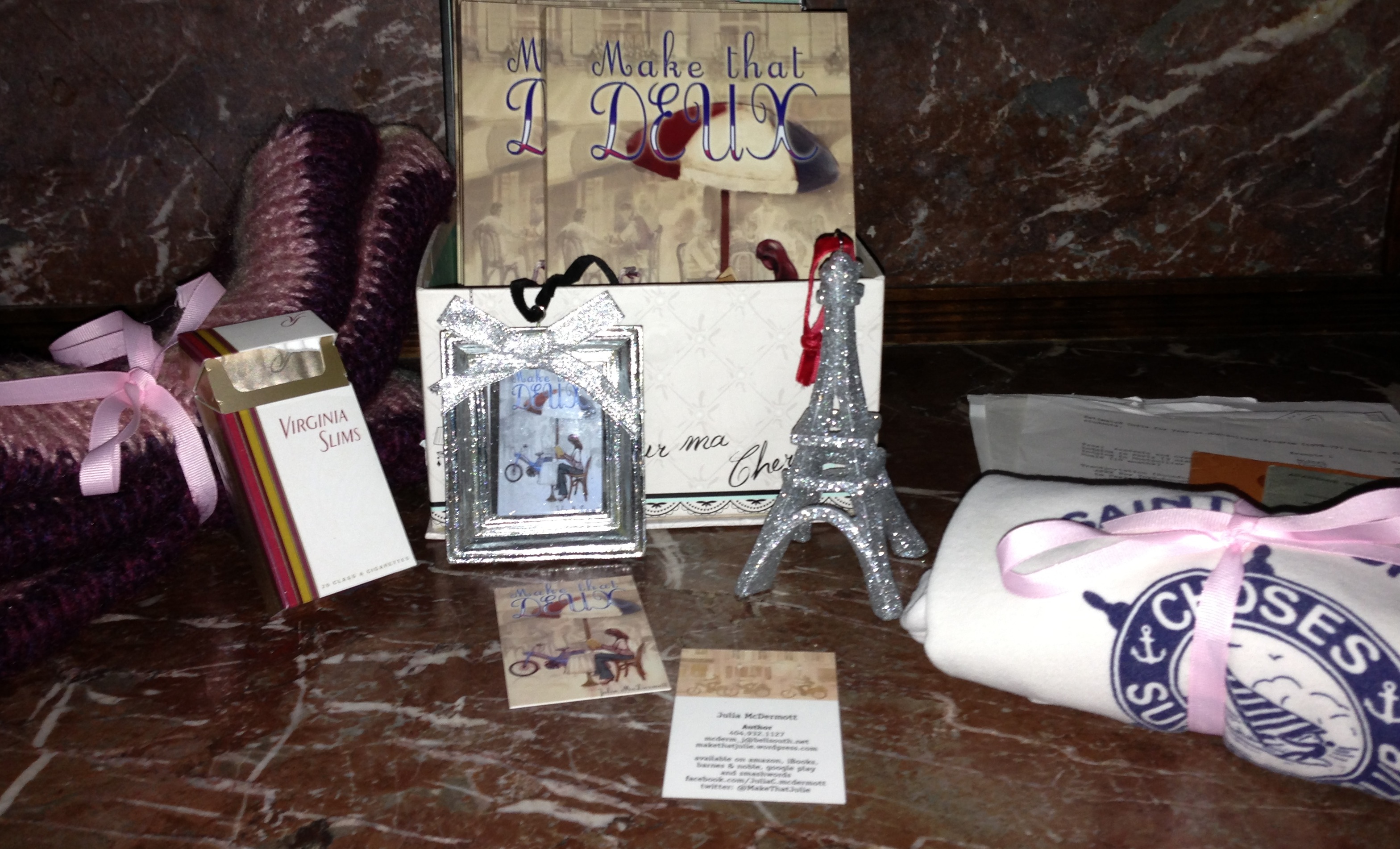 Pre-book club dinner set-up: books + accoutrements. What do you recognize?