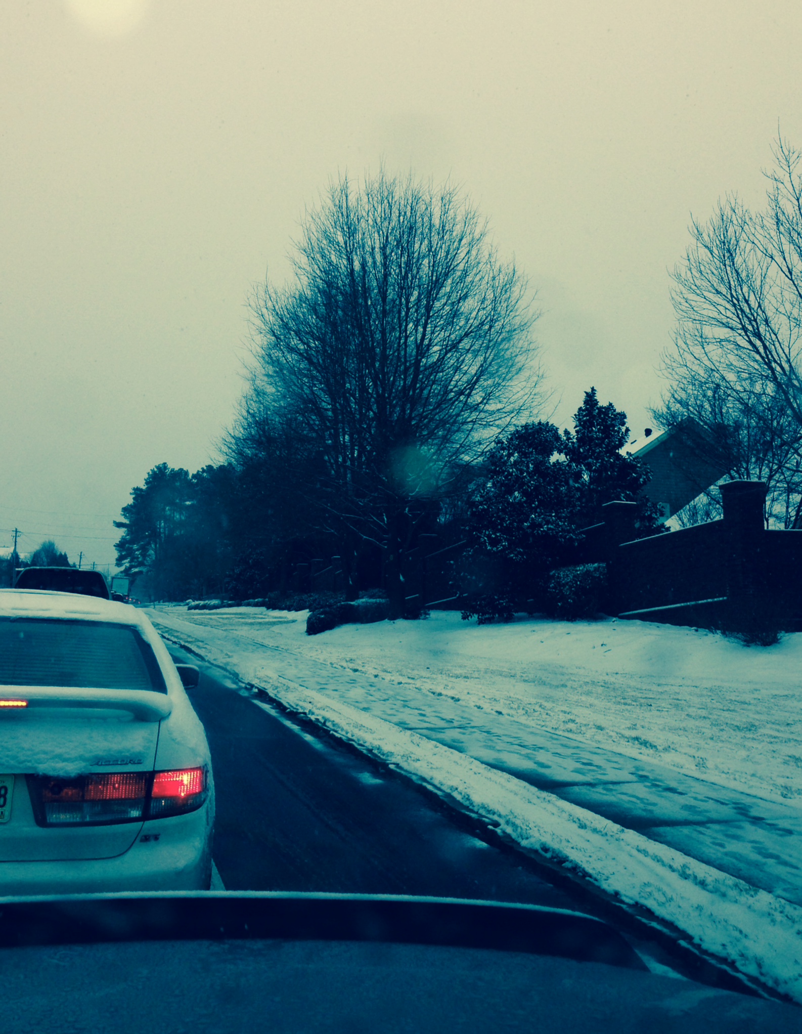 Nowhere, because the one ahead of him was barely moving. But that was better than nothing, and as I approached the turnoff for my neighborhood, I braced myself for its snow-caked and potentially icy streets. Without sliding, I made it up and down the steep hills and arrived at my destination just before six p.m.